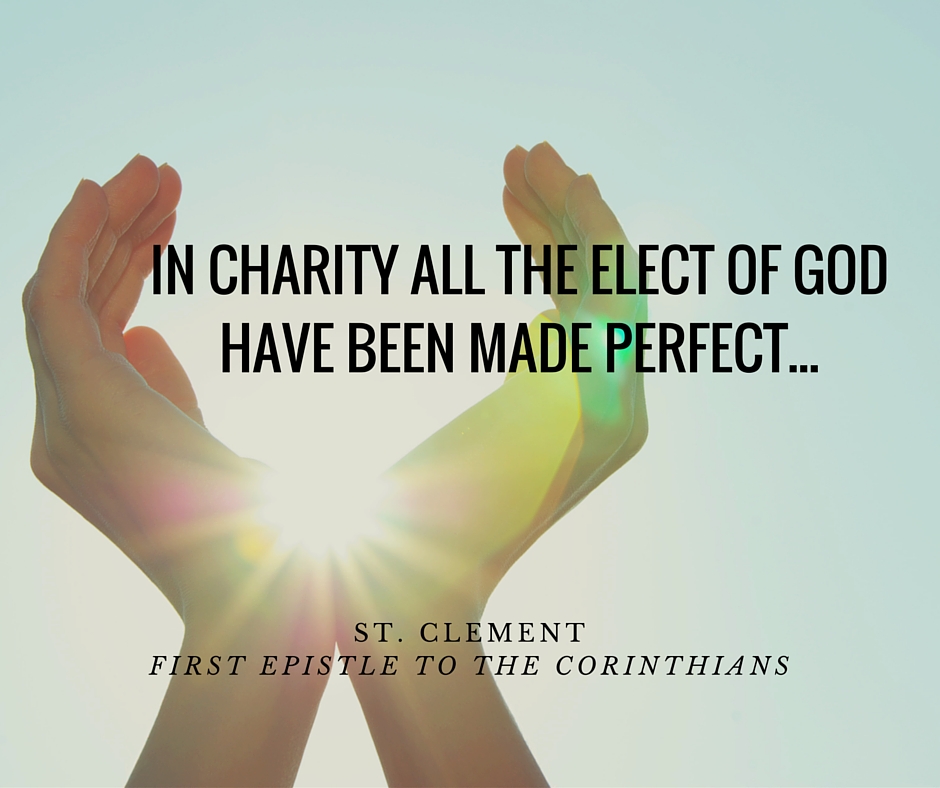 Charity unites us to God. There is nothing mean in charity, nothing arrogant. Charity knows no schism, does not rebel, does all things in concord. In charity all the elect of God have been made perfect . . . ” St. Clement